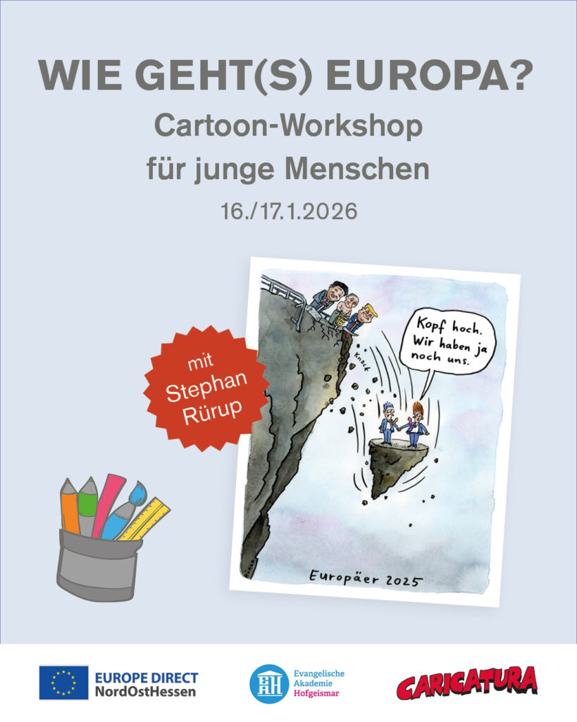 Im zweitägigen Workshop »Wie geht’s Europa!?« sind Menschen zwischen 14 und 27 Jahren eingeladen, sich zeichnerisch mit den Zukunftsfragen Europas auseinander zu setzen.