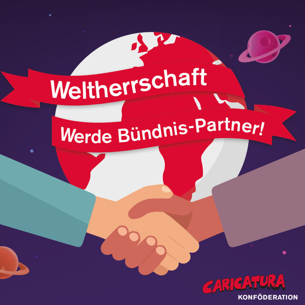 Du hast ein Unternehmen und möchtest uns unterstützen? Werde für ein Jahr lang Bündnis-Partner bei der Erringung der Weltherrschaft für die Komische Kunst und erhalte als Dankeschön zum Beispiel Freikarten für deine Mitarbeiter:innen oder Kund:innen und einen exklusiven Ausstellungsrundgang. Und natürlich platzieren wir dein Logo auf unseren analogen und digitalen Werbemitteln. Neugierig geworden?