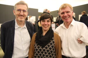 Durch einen kurzweiligen Eröffnungsabend führte Caricatura-Leiterin Saskia Wagner, deren Ausführungen – wie auch die der weiteren Redner – von der erfahrenen Gebärdendolmetscherin Norma Gühlke begleitet wurde. Auch der Oberbürgermeister und Kulturdezernent der Stadt Kassel, Dr. Sven Schoeller, ließ es sich nicht nehmen, auf das gesellschaftsrelevante Thema mit gekonnt gespielter Ironie einzugehen. Höhepunkt war die Laudatio von Jurist, Hornist, Sportler und Hubbe-Freund Matthias Berg. Ein kurzes Interview mit dem Künstler zu dessen Werdegang und Arbeitsweise rundete den offiziellen Teil ab.