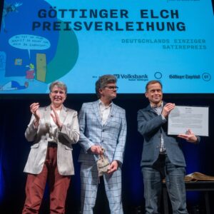 Der »Göttinger Elch«, der seit 1997 jährlich vergeben wird und als einziger deutscher Satirepreis gilt, ehrt kreative Köpfe, mit Witz, scharfsinniger Gesellschaftskritik und künstlerischer Brillanz.