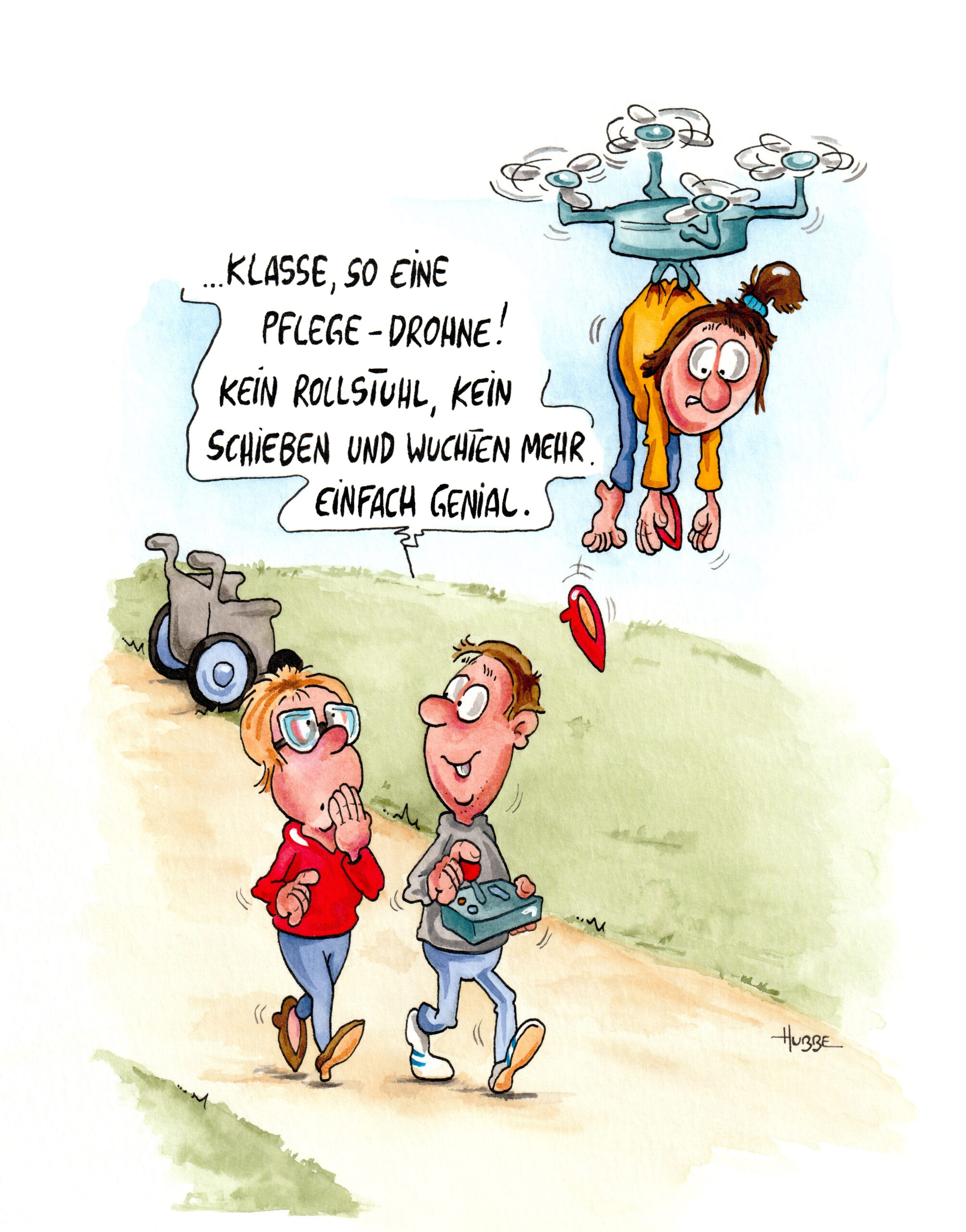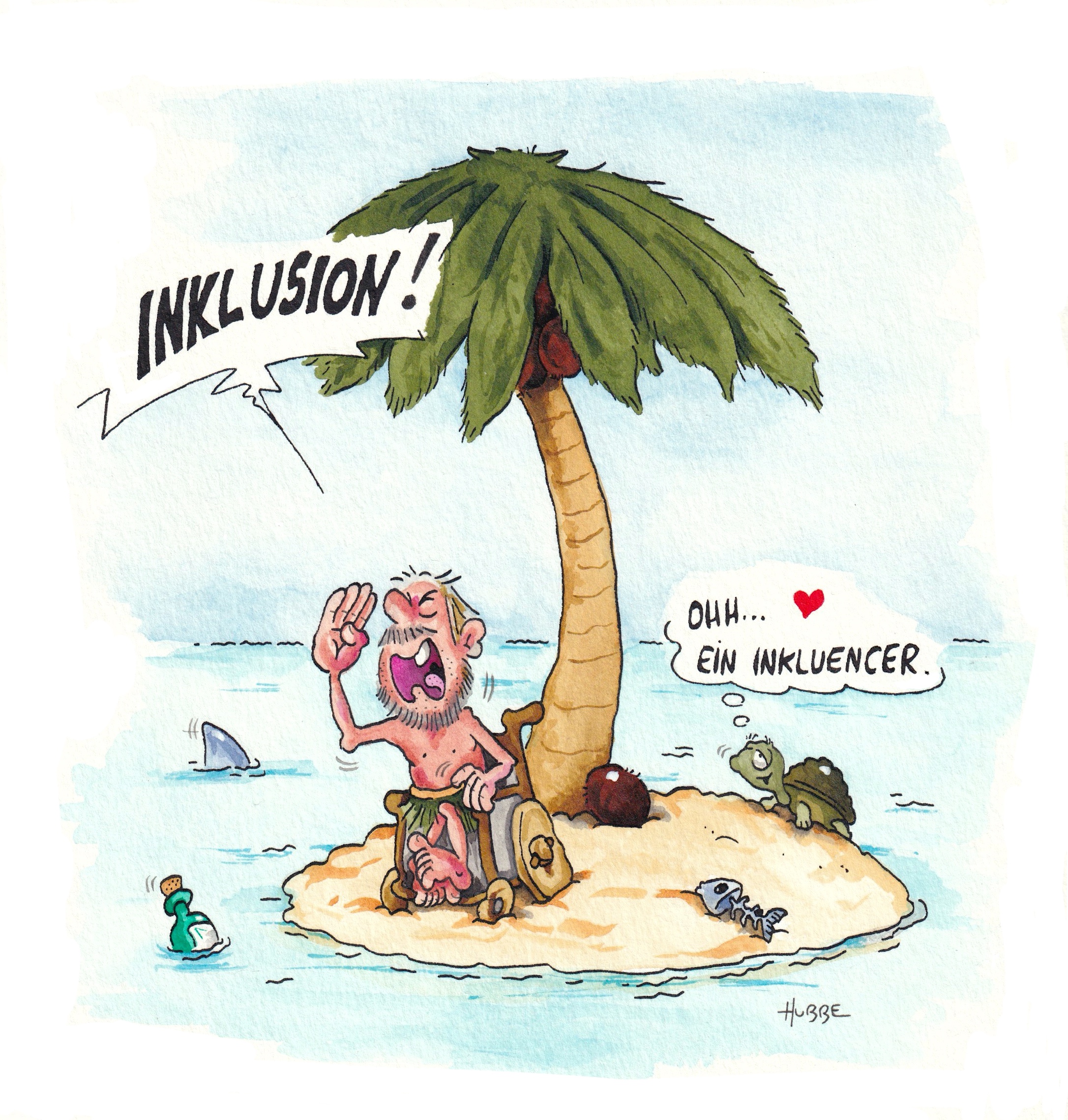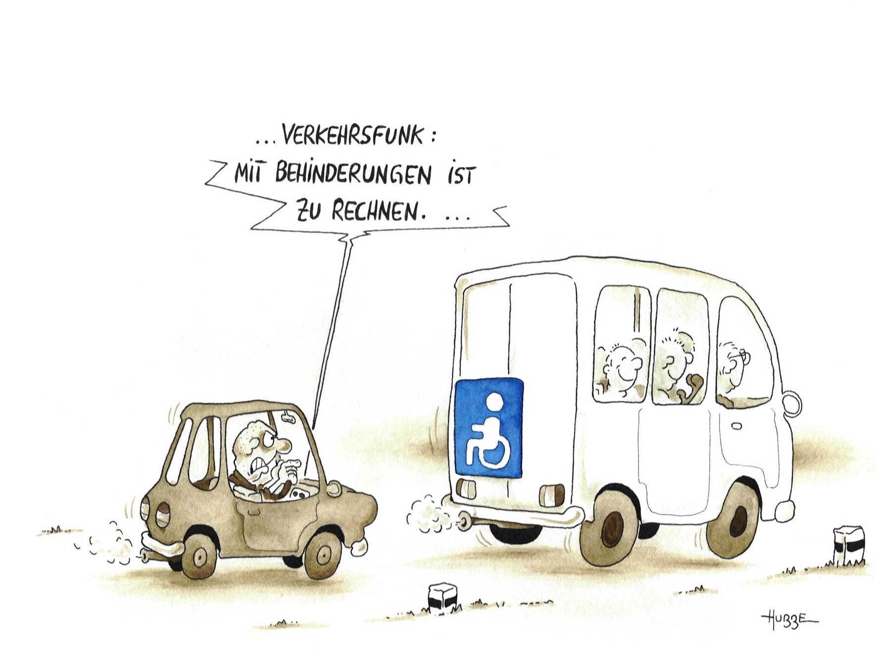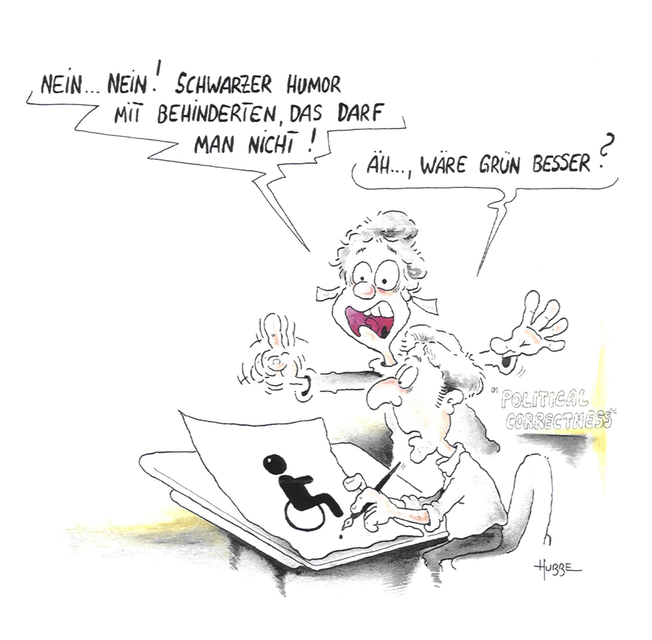 Phil Hubbe nimmt kein Blatt vor den Mund – und legt erst recht keinen Stift aus der Hand. Die Ausstellung zeigt die ganze Bandbreite seines Schaffens. Ob Alltagssituationen, politische Schlagzeilen oder das Chaos auf dem Fußballplatz – Hubbes Cartoons treffen den Punkt: oft schmerzhaft ehrlich, immer mit einem warmen Augenzwinkern. Seit seiner MS-Diagnose 1985 hat er Behinderungen zum zentralen Thema seiner Kunst gemacht – ohne Pathos, dafür mit viel Ironie. Kaum ein Handicap ist vor ihm sicher – sein Humor ist dabei so schwarz wie sein morgendlicher Kaffee. Frei nach dem Motto: »Lachen erlaubt.«