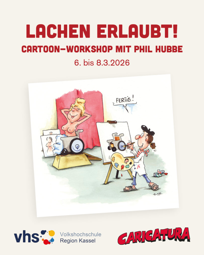 Im dreitägigen Workshop in Kooperation mit der vhs Kassel führt Phil Hubbe in seine Arbeitsweise ein und ruft die Teilnehmenden dazu auf, selbst den Stift in die Hand zu nehmen.